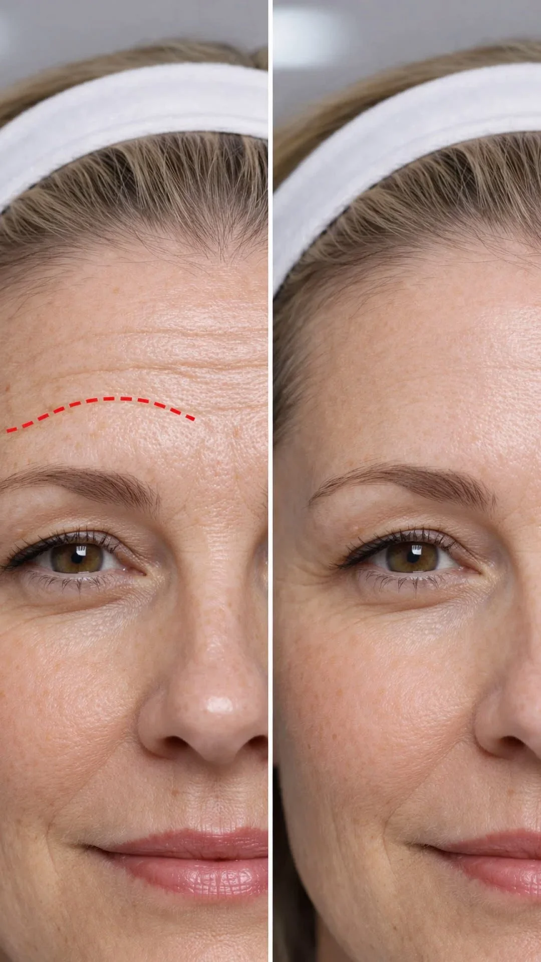 Frente y entrecejo: suavizar las arrugas horizontales y eliminar el pliegue entre las cejas (aspecto de enfado).